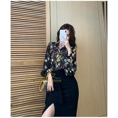 ブラウス レディース 柄 シャツ 長袖 ブラウスシャツ 秋 冬 秋冬 シフォン フラワー チュニック 大人 トップス 20代 30代 40代 ママ 母 春夏作 お出かけ