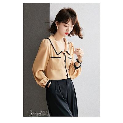 レディース きれいめ 春夏秋新作 オシャレシフォンブラウス Vネックシャツ パフスリーブ 長袖トップス 大人 通勤 ゆったり シャツ