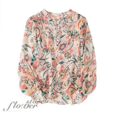 レディース きれいめ 春夏秋新作 オシャレシフォンブラウス 花柄シャツ パフスリーブ 通勤 ゆったり シャツ 長袖トップス 大人