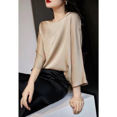 春夏 オシャレブラウス 五分袖トップス シルク風 Tシャツ 無地 薄手 ゆったり 大きいサイズ 上品 通勤トップス