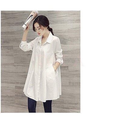 ブラウス レディース 春夏 おしゃれ ブラウス 大きいサイズ 長袖シャツ きれいめ ロング 無地 通勤 着痩せ シャツ 韓国風 トップス 上品 2