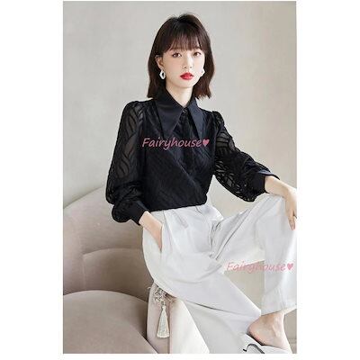 大人折り襟トップス 50代 オフィスブラウス幾何オシャレブラウス ブラウス 30代 韓国風 40代 レディース 秋 通勤ゆったりシャツ 長袖ブラウス