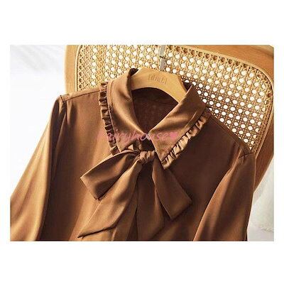 オフィスブラウス 40代 オシャレブラウス 秋服 通勤 レディース ブラウス 長袖ブラウス 50代 韓国風 リボンフレア ゆったりシャツ 30代 大人 折り襟トップス