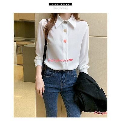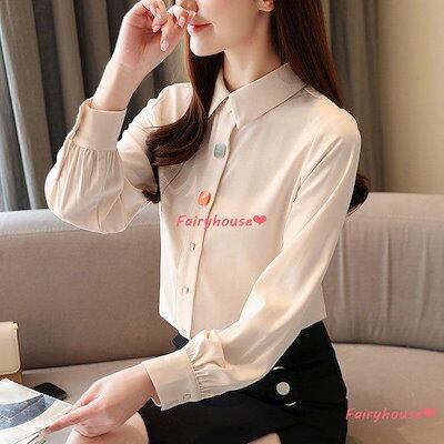 通勤 ゆったりシャツ ブラウス オフィスブラウス レディース 30代 長袖ブラウス 折り襟トップス 50代 白シフォンシャツ 韓国風 40代 春秋 オシャレブラウス