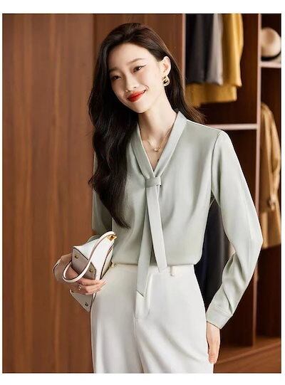 【2枚200OFF】レディース今週の割引は 25% オフですシャツ 長袖 秋新作 ワイシャツレディース v襟レディーストップス 百掛け やせて見える 韓国ファッション