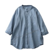 ダブルガーゼ シャツ レディース チュニック ブラウス ガーゼシャツ ロング 長袖 コットン 綿100% カジュアルシャツ 立ち襟 バンドカラーシャツ 前開け ボタン留め 長袖シャツ コットンシャツ今 | coolcoool