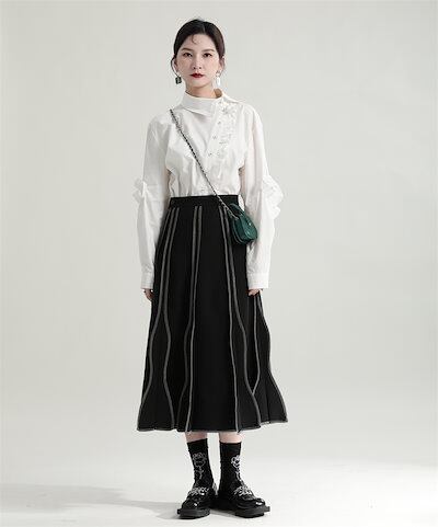 早い者勝ち トップス 2024秋 フリル 非対称襟 中長セクション レディース シャツ 上着 長袖 改良シャツ ブラウス