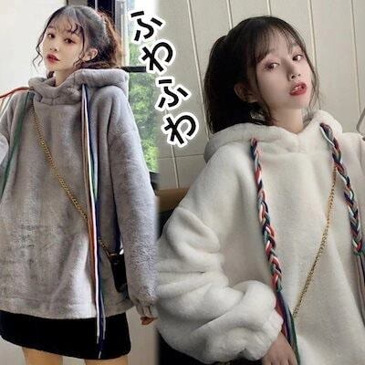 裏起毛ファッション パ一力一 ふわふわ パーカー可愛い 韓国ファッション フード付き 体型カバー 保温性 トップス アウター 可愛いパーカー レディース30%までに制限