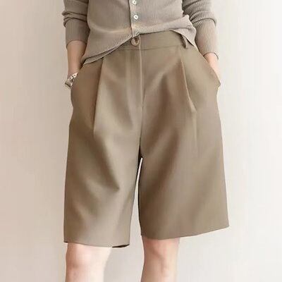 S〜XL ゆったり フォーマル 膝上丈 体型カバー 洗練 五分丈スラックスレディースファッション ボトムス パンツ