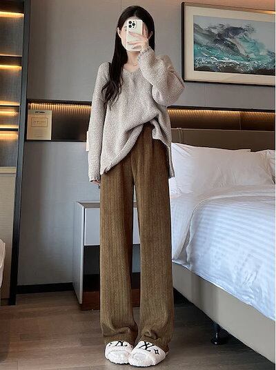 裏起毛パンツ パンツ レディース ズボン 脚長効果 パンツ 大きめサイズ 着痩せ ハイウエストスラックスパンパンツ 冬
