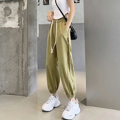 接触冷感ボトムスレディース夏服ロングパンツスポーツカジュアルスラックス韓国ファッションハーレムパンツ ハイウエスト着痩せ効果