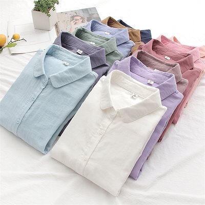 綿100% コットンシャツ 丸襟 レディース 長袖シャツ 2重ガーゼシャツ 無地 9色 スーツインナー 通勤 OL オフィス ビジネス フォーマル シンプル ナチュラル ベーシック 大きいサイズ ゆっ | coolcoool