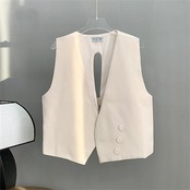 ジレ レディース 春夏 サマーベスト バックデザイン ノースリーブ ショート丈 ノーカラー Vネック 無地 スーツベスト トップス レディース ジレ フォーマル 春 夏 秋 大人 OL 通勤 羽織 カ | coolcoool