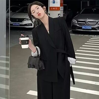 秋 カジュアルゆったり スーツ セットアップ レディース 通勤 ジャケット/ワイドパンツ 二点セット 秋 アウター フォーマル ビジネススーツ ママ スーツ 卒園式 卒業式