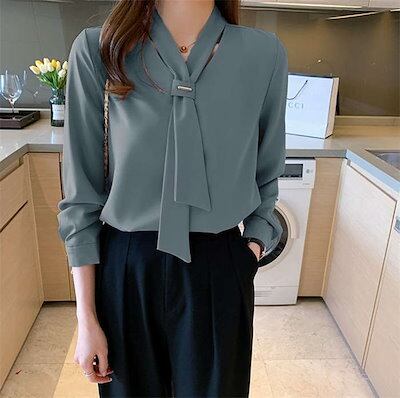 ボウタイブラウス ブラウス シャツ 白シャツ レディース インナー トップス スーツインナー ビジネススーツ 春 夏 ボウタイカラー 長袖 ボウタイ オフィスカジュアル フォーマル 上品 高級感 体型 | coolcoool