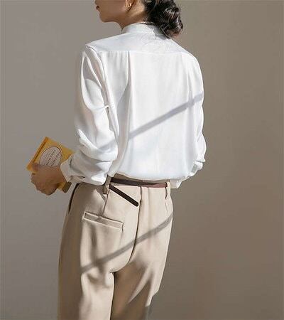 ブラウス シャツ インナー レディース トップス スーツインナー ビジネススーツ 白シャツ 春夏秋冬 長袖 スタンドカラー パール付き パール オフィスカジュアル フォーマル 上品 洗濯可 着痩せ 小 | coolcoool