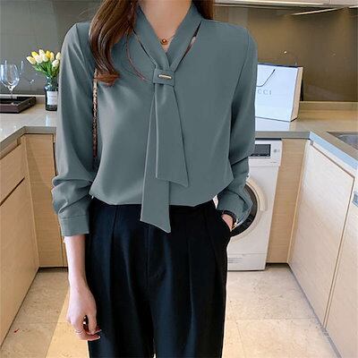 ブラウス ボウタイ 長袖 レディース vネック シャツ フォーマル オフィス 大人 きれいめ お洒落 通勤 ビジネス スーツインナー ショート丈 シンプル とろみ エレガント フェミニン カジュアル | coolcoool
