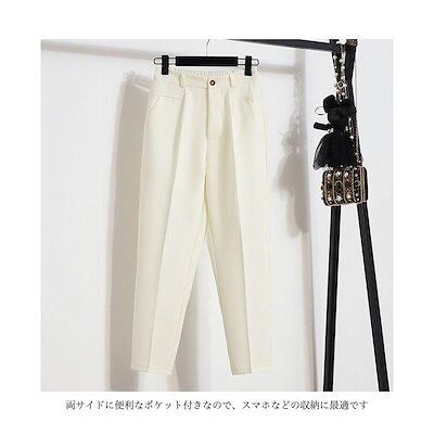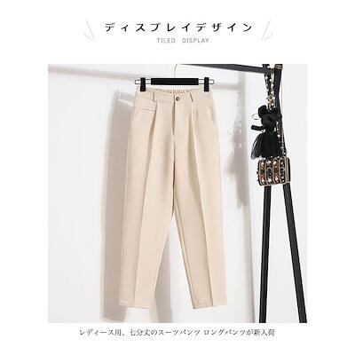 スーツパンツレディースロングパンツ無地ポケット付きウエストゴlムオフィススラックス柔らかいゆったりシンプル脚夏