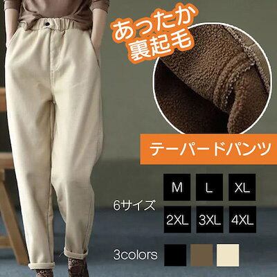 裏起毛 テーパード パンツ 暖かい 9分丈 レディース クロップドパンツ ストレートパンツ ゆったり ウエストゴム カジュアル 秋冬