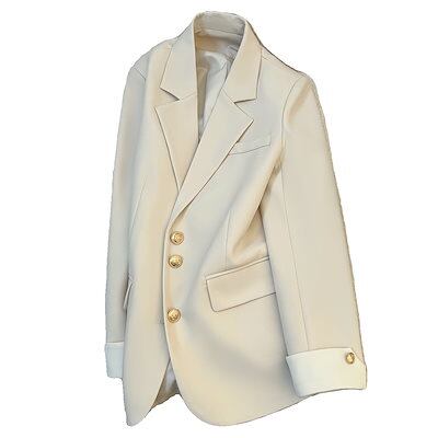 クリームブレザーレディース2024春新作韓国風デザインニッチファッショナブル気質通勤小さめさめスーツ