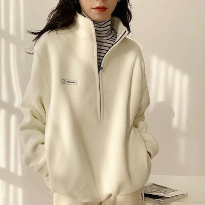 ポリフリース ジャケット レディース 2024 秋冬新作 ゆったり アメリカン 厚みのあるスタンドカラー プルオーバー スウェットシャツ フリース 暖かい トップス