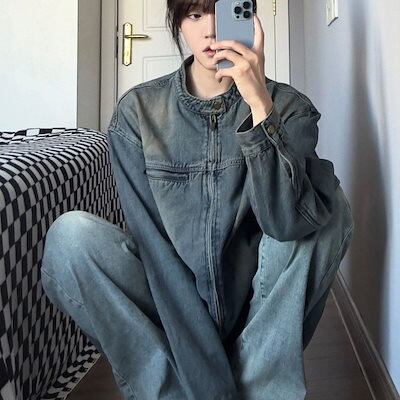 本日の限定商品アメリカンストリートデニムジャケット 秋の新作 トレンド ジャケットトップ ジャケット レディース ノーカラージャケット 韓国 ジャケット ロングジャケット 秋服 レディース | coolcoool
