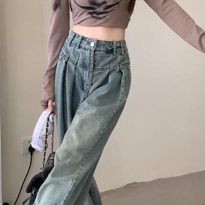 デニムパンツ ワイドパンツ デニム デニムパンツ バギー レディース ワイド フレア ジーンズ パンツ ジーパン かっこいい カジュアル ゆったり ダンス