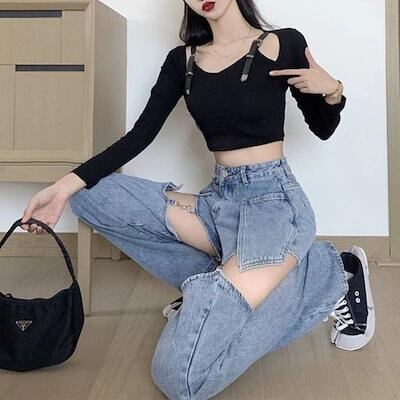 デニムパンツ ロングパンツ デニムパンツ ショートパンツ カーゴ ワイド バギー レディース 韓国ファッション ストリート 大きいサイズ ゆったり セパレート 夏