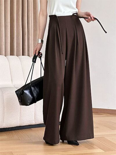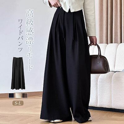 タックワイドパンツ レディース 春秋 パンツ ロングパンツ ガウチョパンツ 通勤 ボトムス 大人 リラックス オフィス フォーマル バギーパンツ イージーパンツ ゆったり カジュアル 体型カバー 上品 | coolcoool