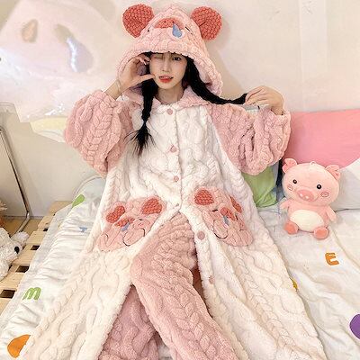 人气新作着ぐるみパジャマ 冬の サンゴの綿毛 かわいいパジャマ女性暖かくて甘い少女用ガウンセット新型ルームウェア