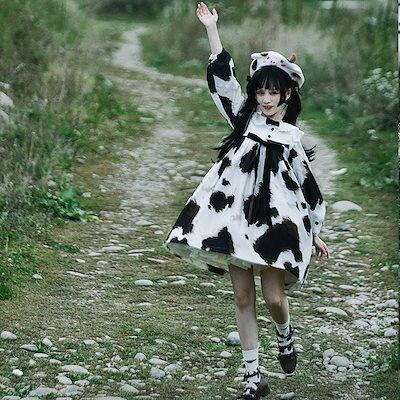乳牛長袖スカート 日系 です メイド服 ワンピース コスチューム コスプレかわいい学生ワンピース ワンピースワンピース ドレス ワンピース 秋冬 パーティードレス ロングワンピース ニットワンピース | coolcoool