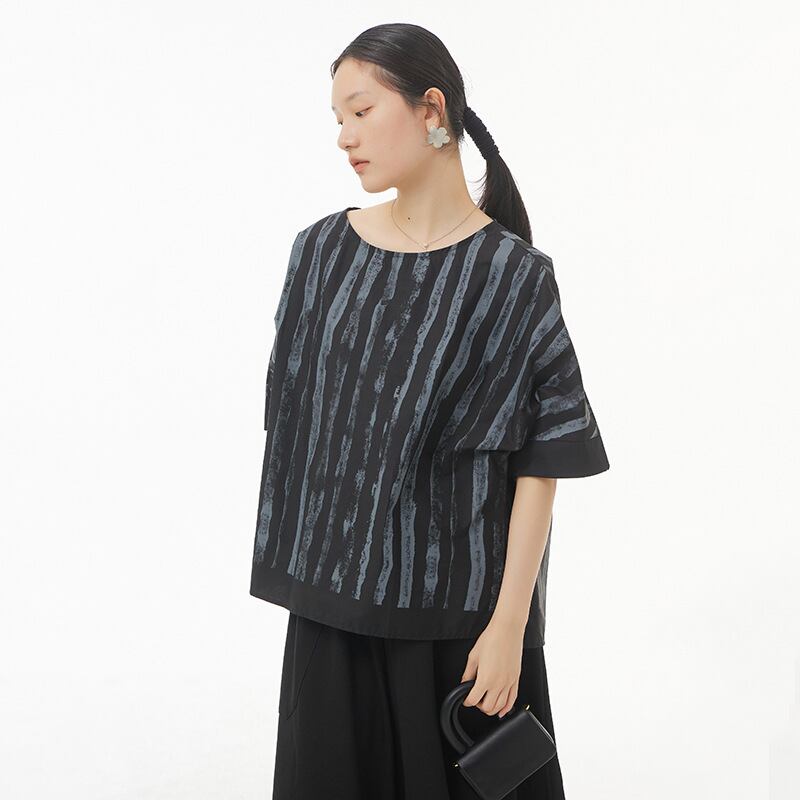 初回送料無料新作韓国人気トップスTシャツ半袖フィットルーズトップストライプ半袖
