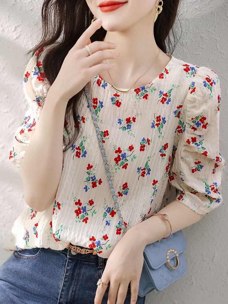 初回送料無料 砕花半袖上着 シャツ風トップス レディースファション商品 おしゃれトップス 人気上着