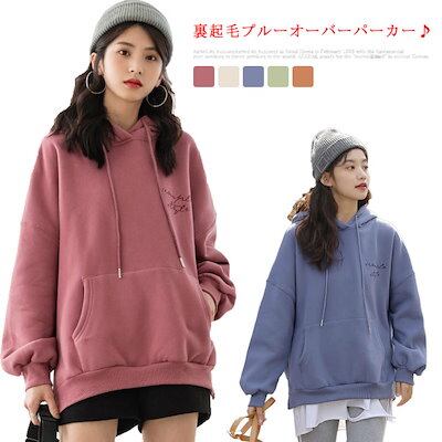 裏起毛 スウェット レディース プルオーバー トレーナー パーカー ロゴプリント バックロゴ フード付 ドロップショルダースリーブ