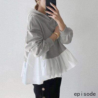 スウェットパーカー レディース 40代 春秋 オシャレブラウス 長袖トップス パーカー プリーツ裾 無地 カジュアル 韓国風 プルオーバーTシャツ 着痩せ 大人可愛い