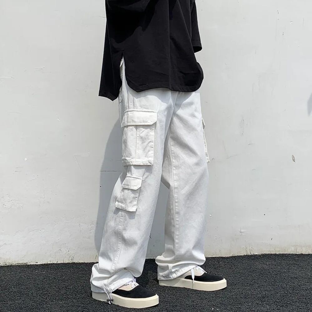 メンズカジュアルパンツ,ルーズフィット,ワイドレッグ,ヒップホップポケットカーゴパンツ,メンズファッションストリートウェア,ブラックとホワイト y2k ボトムス T240902101731_03 | coolcoool