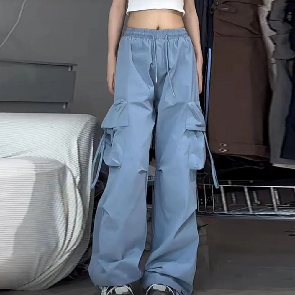 ドローストリング付きレディースカジュアルテックパンツ,ローウエスト,ワイドレッグパンツ,特大,カーゴパンツ,ストリートウェア y2k ボトムス T240902101905_02 | coolcoool