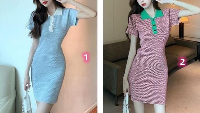 2023春夏新作 女 レディース ハイウエスト 半袖 ニット ミニ ワンピース ドレス タイトスカート