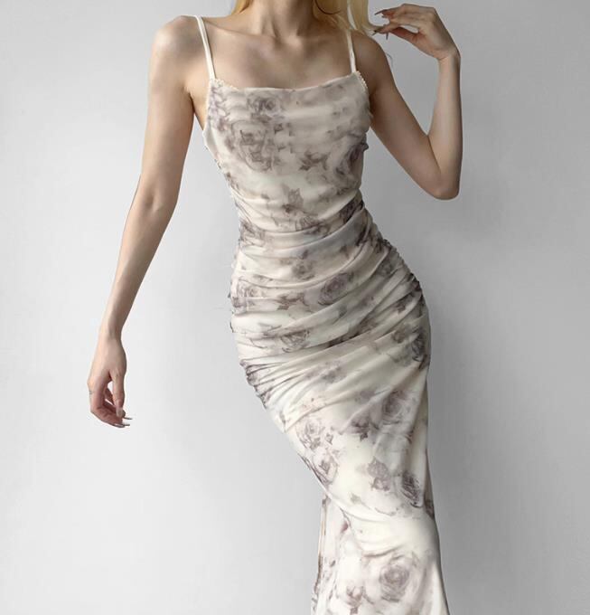 2023春夏新作 女 レディース ハイウエスト 袖なし 吊りスカート ロング ワンピース タイトスカート S-L