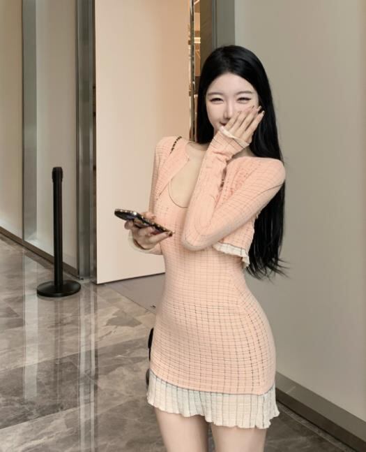 2023春夏新作 女 レディース 袖なし 吊りスカート ミニ ワンピース ドレス タイトスカート セット