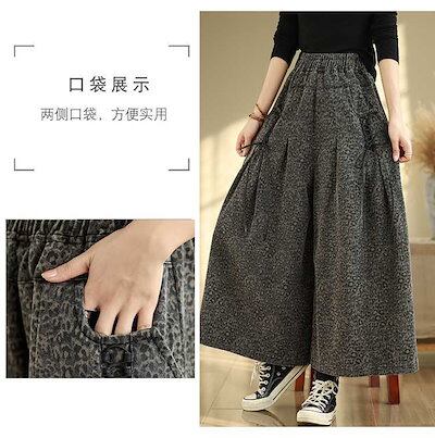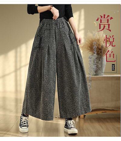 「ファットガール」 2024秋新品 デニム 豹柄 ワイドパンツ ゴム 大きいサイズ 体型カバー レディース ロングパンツ フレア メガ割