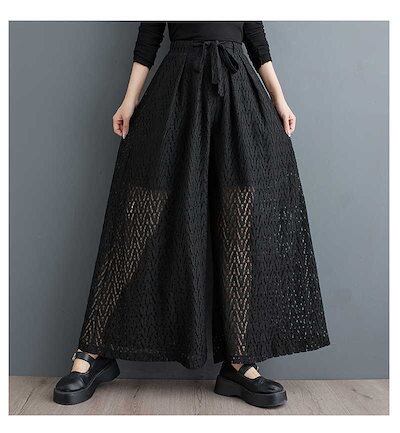 「ファットガール」 2024秋新品 九分丈 ワイドパンツ ゴム 大きいサイズ 体型カバー ゴム キュロットスカート レディース ロングパンツ メガ割