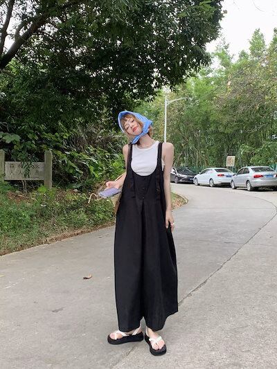 サロペット 夏 ゆったりカジュアル 怠惰な風 オールインワン オーバーオール 百掛け ロング ワイドパンツ レディース 体型カバー?ひんやりボトムス 学生 20代30代40代