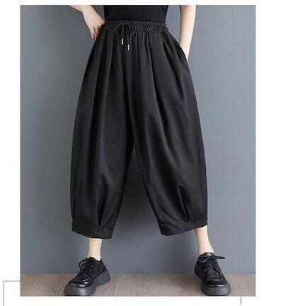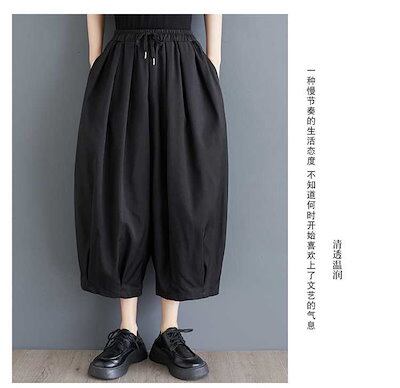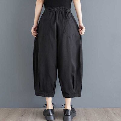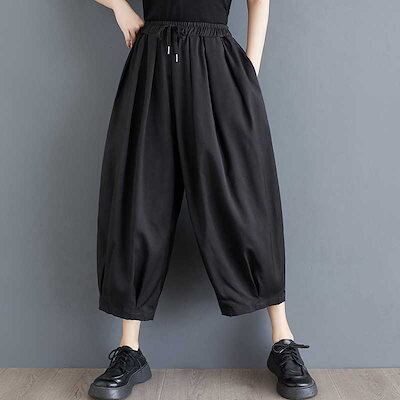 2024春 夏 九分丈 ワイドパンツ ゴム ハイウエスト レディース 体型カバー ロングパンツ
