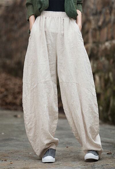 バルーンパンツ ワイド ボトムス レディース サーカスパンツ ロング丈 春 夏 秋 おしゃれ 流行 可愛い カジュアル 麻 リネン 綿 コットン シンプル ポケット 着回し 快適 通気性 大人可愛い | coolcoool
