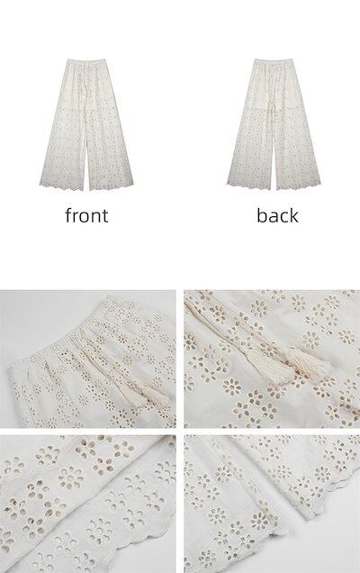 ワイドパンツ レース レディース 夏 パンツ ロング ワイド 総レース ハイウエスト 裏地 フレアパンツ リラックスパンツ ロングパンツ ペチパンツ ボトムス 透け感 ゆったり ウエストゴム カジュア | coolcoool