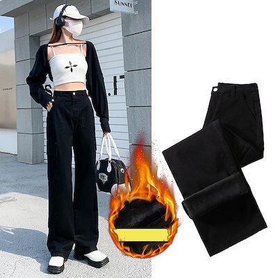 新品 大人気 カーゴパンツ レディース 裏起毛 ワークパンツ ハイウエスト ワイドパンツ 秋冬 ロング ボトムス カーゴ 無地 カジュアル ゆったり おしゃれ
