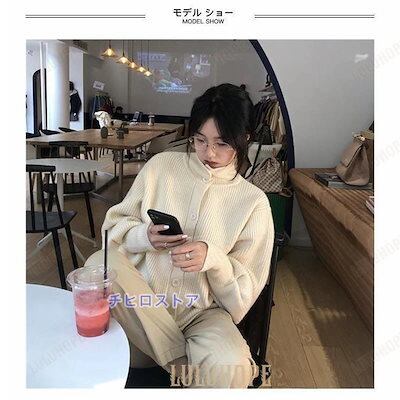 カーディガン 厚手 レディース ニットカーディガン ゆったり ボタンカーディガン 折り襟 セーター 立ち襟 コーディガン ハイネック ニットセーター