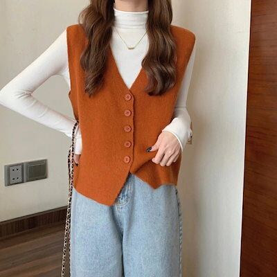 【3日で出荷】ニットベスト レディース Vネック ベスト 前開き ニット ジレ トップス ノースリーブ 重ね着 無地 ボタン オフィス カジュアル 大人 きれいめ 上品 レトロ 春 秋 冬 韓国 韓国 | coolcoool