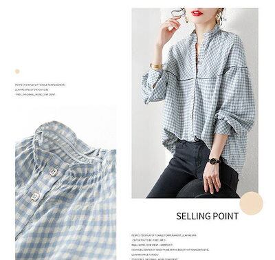 【3日で出荷】シャツ ブラウス レディース フリル 長袖 チェック柄 シャツブラウス 開襟 ボタン留め チェックシャツ ラウンドヘム バルーン袖 ドルマン 切り替えシャツ トップス ギャザー ボリュー | coolcoool